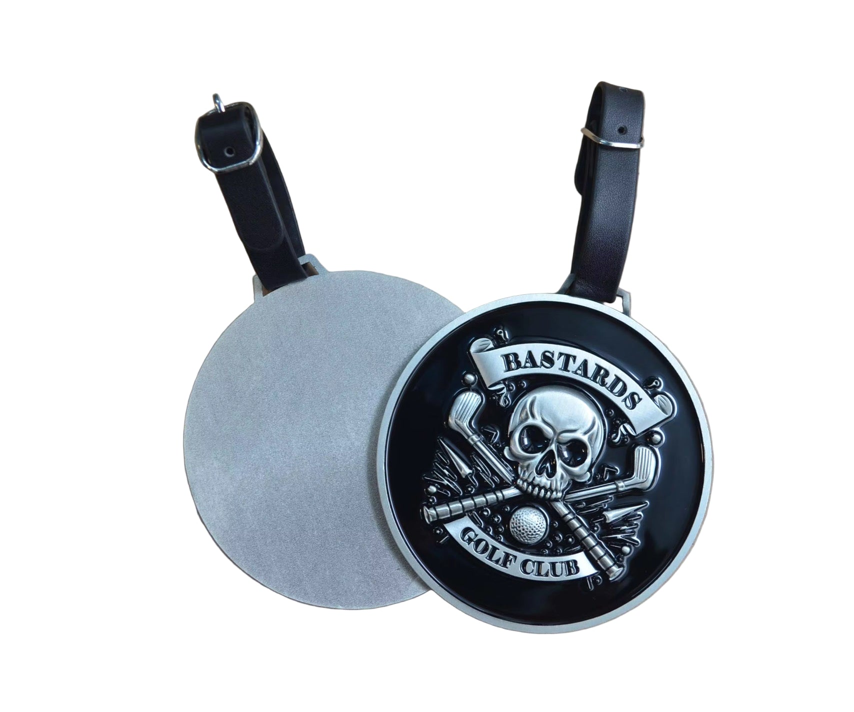 Mark your bag with attitude using the Bastards Golf Club Golf Bag Tag. Made from durable, weather-resistant zinc alloy, this bold golf accessory ensures your bag stands out on any course. Featuring the iconic Bastards Golf Club emblem, precision diecast details, and a secure strap for any golf bag, it’s built to last through every round. Perfect for players who want their gear to reflect their personality, or as a unique golf gift for him or her, this bag tag proves you’re a proper Bastard every time you step onto the course.